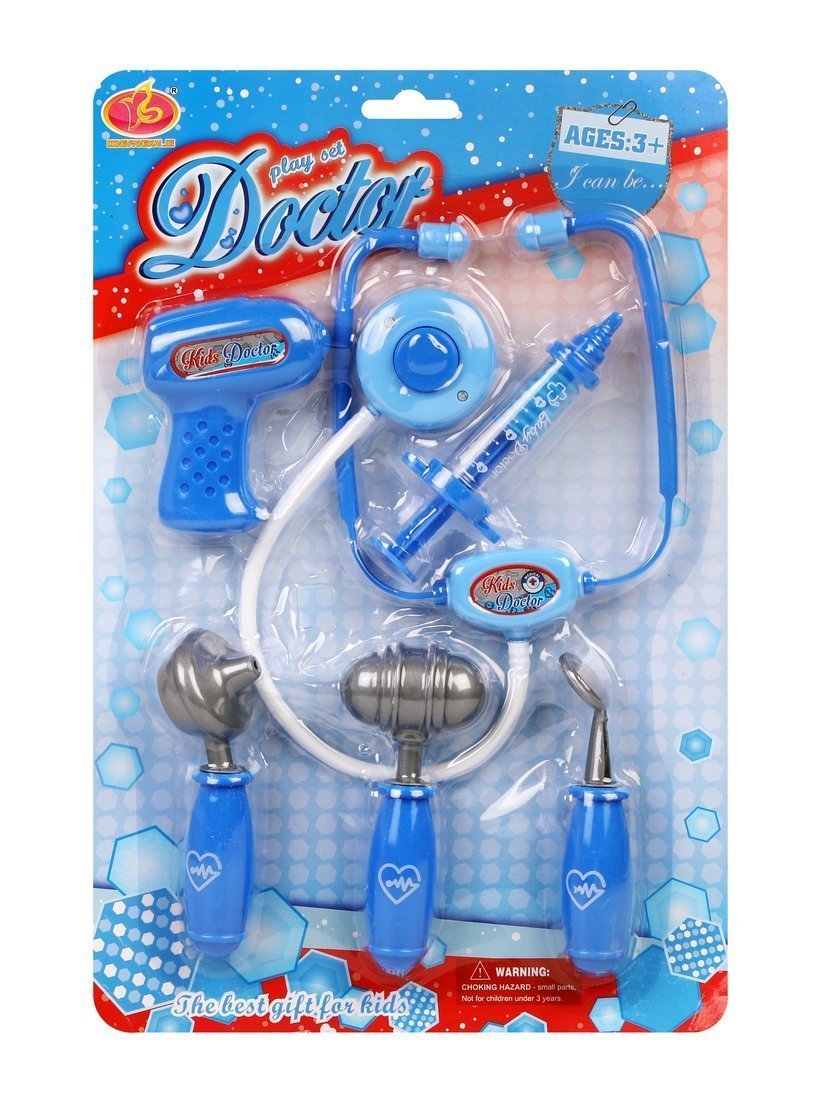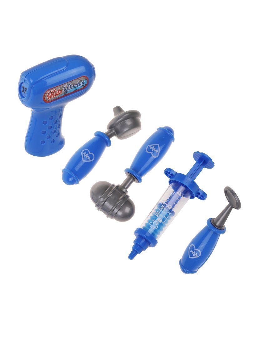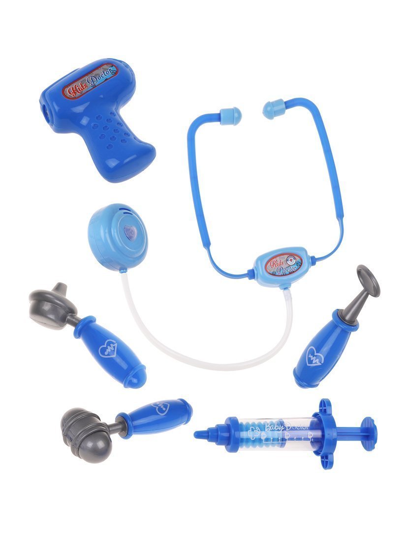 Игровой набор «Доктор» включает следующие игрушки: фонендоскоп, градусник, шприц, молоточек, отоскоп, безопасное стоматологическое зеркало. Всего 6 предметов.