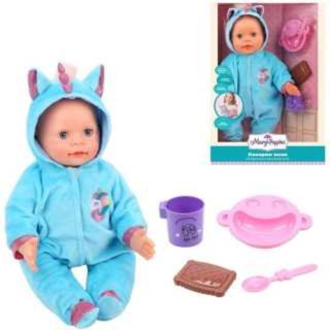 В комплекте: кукла, тарелка, ложка, стаканчик, печенье.