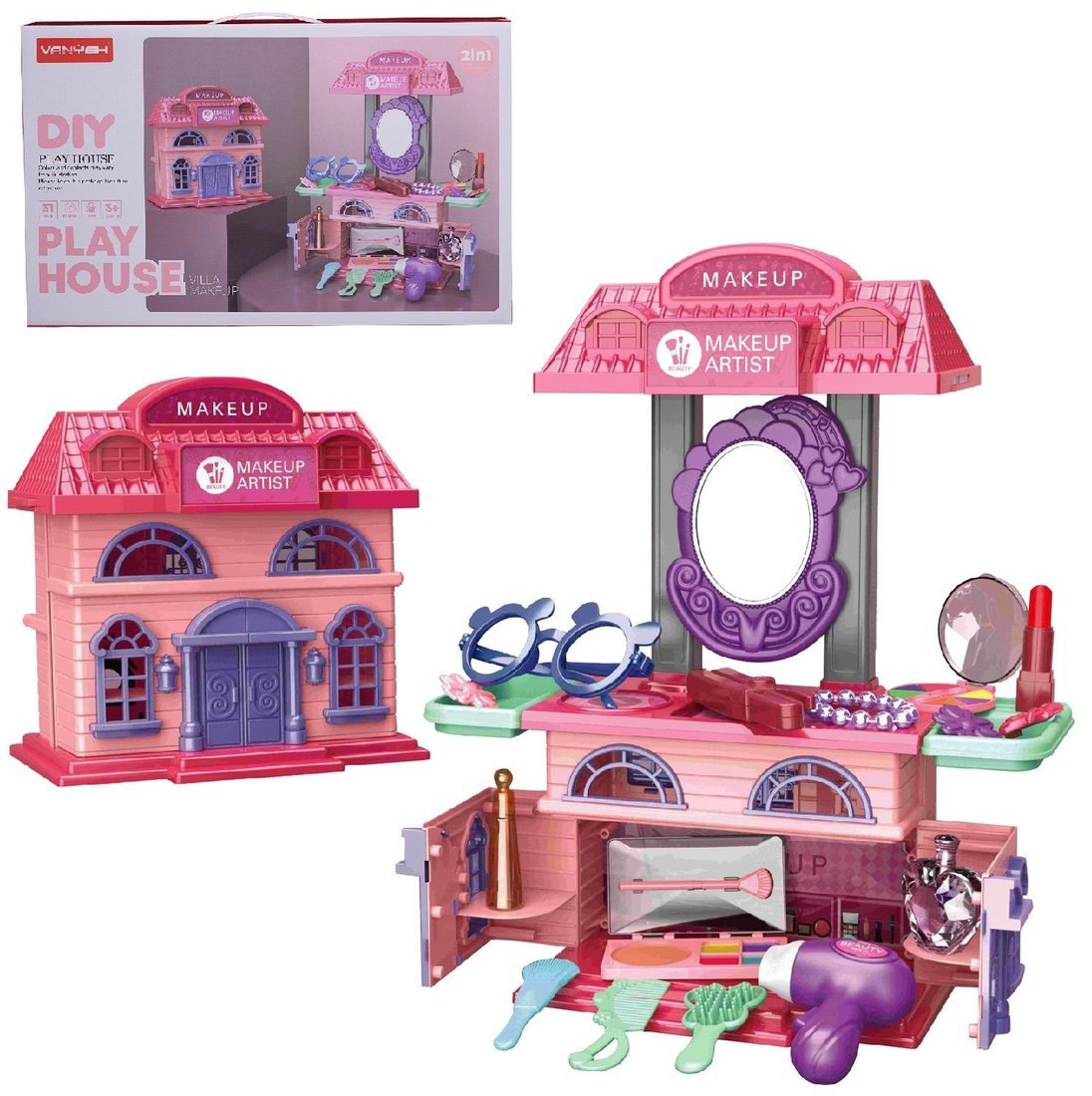 Уникальный игрушечный дом - это просто мечта любой девочки! С помощью дополнительных элементов домик легко преобразуется в двухуровневый миниатюрный салон красоты с многочисленными тематическими предметами для увлекательной игры. После игры все детали набора можно сложить внутри домика, в котором их будет удобно хранить и транспортировать. Набор выполнены из качественного прочного пластика привлекательных цветов, отлично подойдет для сюжетно-ролевых игр ребенка, поможет девочке почувствовать себя настоящей модницей.