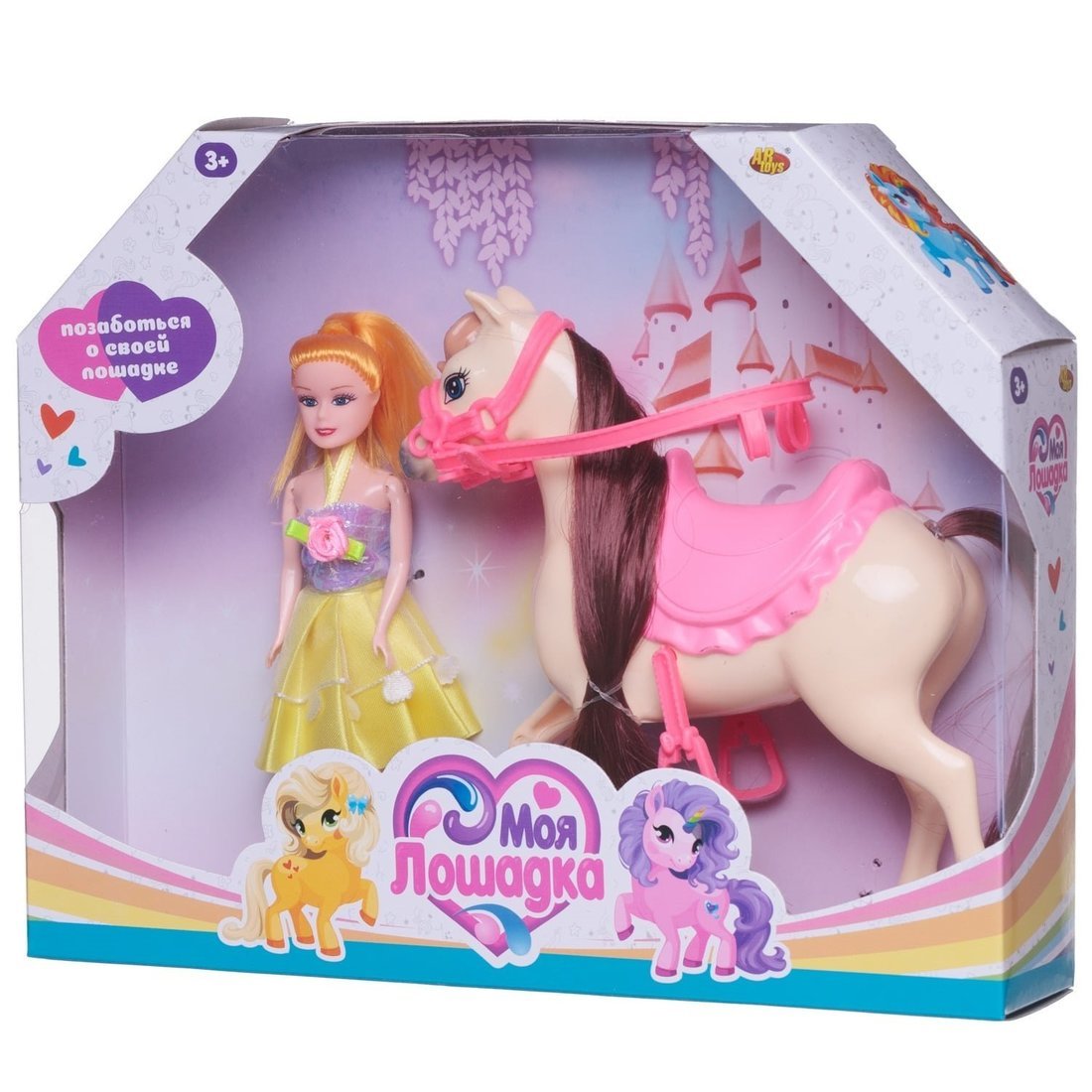 Игровой набор Лошадка с розовым седлом и куколка