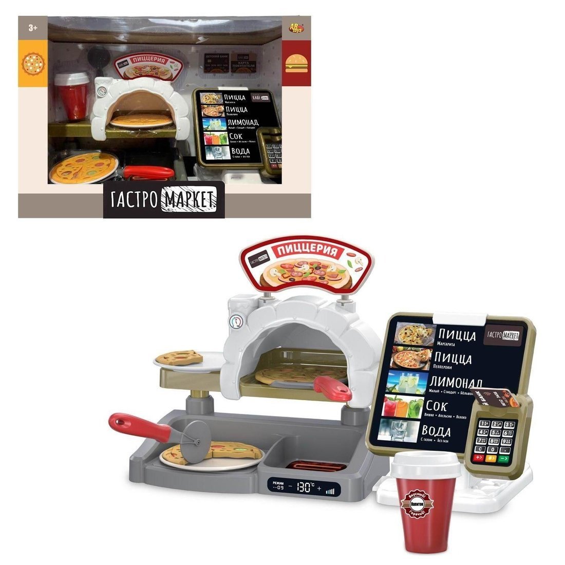 Игровой набор «Пиццерия» из серии "Гастромаркет" покорит сердца юных любителей этого популярного блюда итальянской кухни. Он представляет собой игровой комплекс с печью для приготовления пиццы, рабочей зоной, где она будет нарезаться на аппетитные кусочки и зоной выдачи клиенту. Дополняет набор торгово-кассовый терминал. Он состоит из экрана с меню ресторана и устройства для оплаты заказов банковской картой. Выбор блюда производится нажатием на его изображение на экране и сопровождается звуковым сигналом. Современный стильный дизайн, продуманный состав набора, звуковые эффекты, функциональное меню, терминал с банковской карточкой сделают игру с набором интересной и увлекательной.