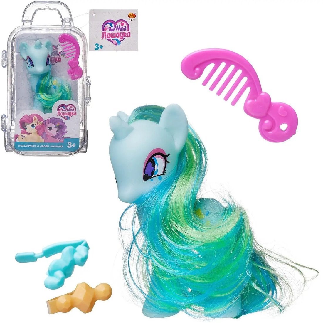 В состав набора входят: пони, расческа, 2 заколки.
