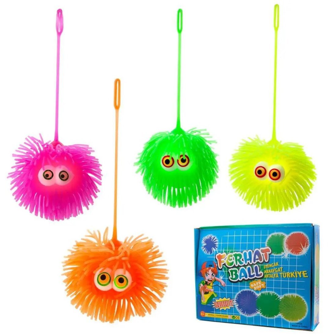 Игрушка-антистресс забавный пучеглазый мячик на резинке от бренда Junfa привлекает внимание своим оригинальным дизайном и яркой окраской. Мячик имеет форму шара, покрытого шерстинками. Он выполнен из эластичного, приятного на ощупь материала. Световые эффекты сделают игру с мячиком еще более интересной и увлекательной.