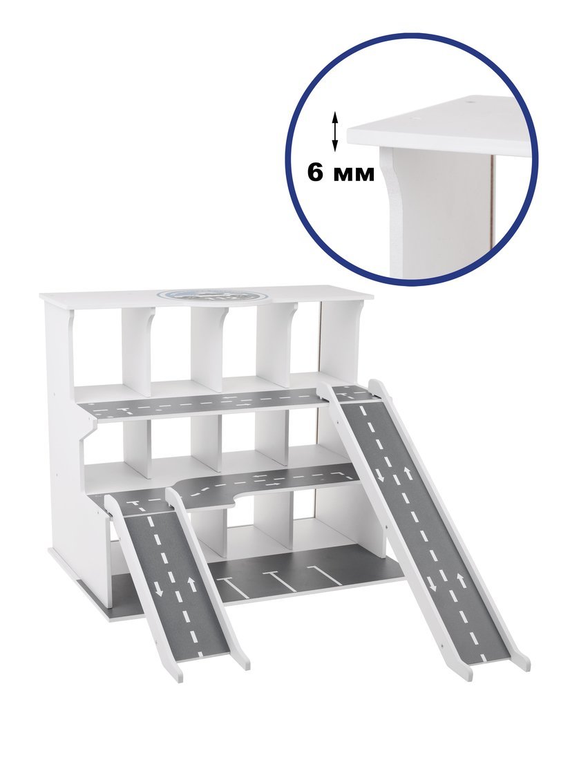 Трехуровневая парковка из дерева станет удобным местом для хранения мотоцикла, спортивной, гоночной или полицейской машины, а также идеальным пространством для сюжетно-ролевых игр.