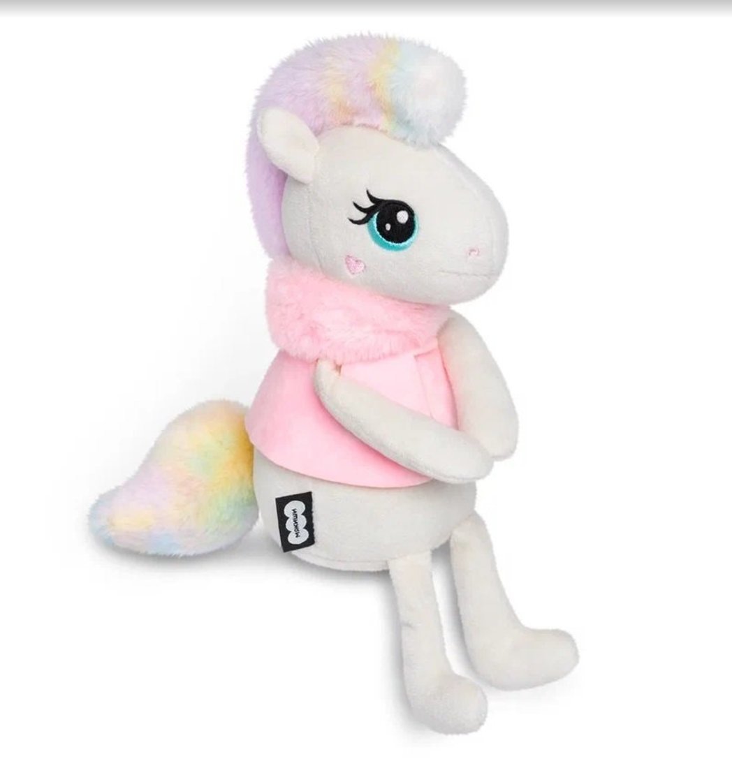 Эта чудесная игрушка не только радует глаз своим ярким внешним видом, но и дарит незабываемые тактильные ощущения. Нежное радужное покрытие в сочетании со стильным съёмным розовым пальто и шарфиком создаёт неповторимый образ, который придётся по вкусу даже самым взыскательным маленьким модникам. Благодаря продуманной конструкции, Зефирка может самостоятельно сидеть без опоры, что делает её ещё более привлекательной для игр.