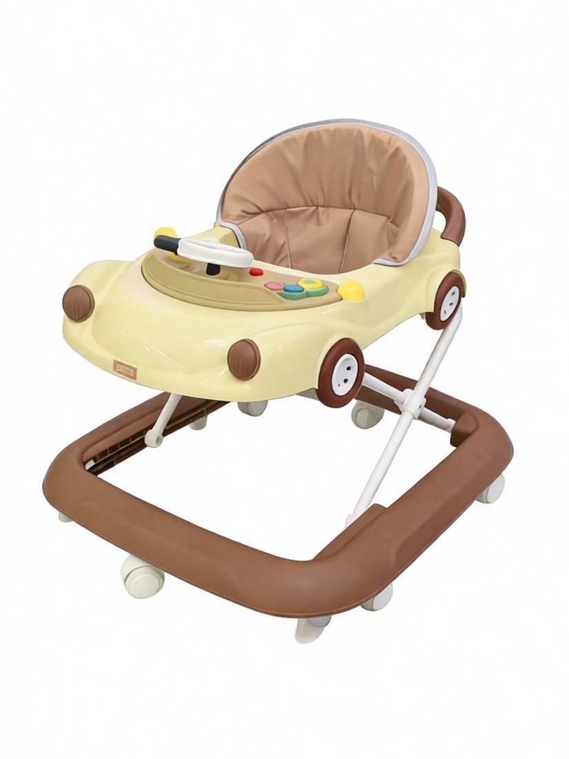 Ходунки-машинка детские складные, 8 колес, звук, регулир. высоты, складные, эл. пит.AААх3 не в компл., бежевый с коричневым