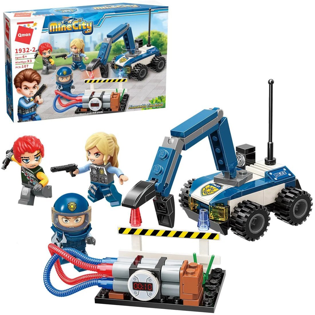 Конструктор QMAN из серии «MineCity» позволит ребенку собственными руками собрать и разыграть сценку, в которой будут присутствовать полицейские и нарушители порядка. Простое и надежное соединение деталей разных размеров и форм между собой обеспечат специальные крепления. Во время игры ребенок сможет задействовать свою фантазию и придумать интересные сценарии. В процессе сборки и игры с готовой моделью юный конструктор будет развивать мелкую моторику рук, пространственное мышление, внимательность и усидчивость.