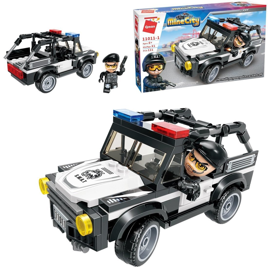 Из конструктора от бренда QMAN из серии «MineCity» ребенок может собрать собственными руками полицейскую машинку. Управляет ей отважный страж порядка. Простое и надежное соединение деталей разных размеров и форм между собой обеспечат специальные крепления. Во время игры ребенок сможет задействовать свою фантазию и придумать интересные сценарии. В процессе сборки и игры с готовой моделью юный конструктор будет развивать мелкую моторику рук, пространственное мышление, внимательность и усидчивость.