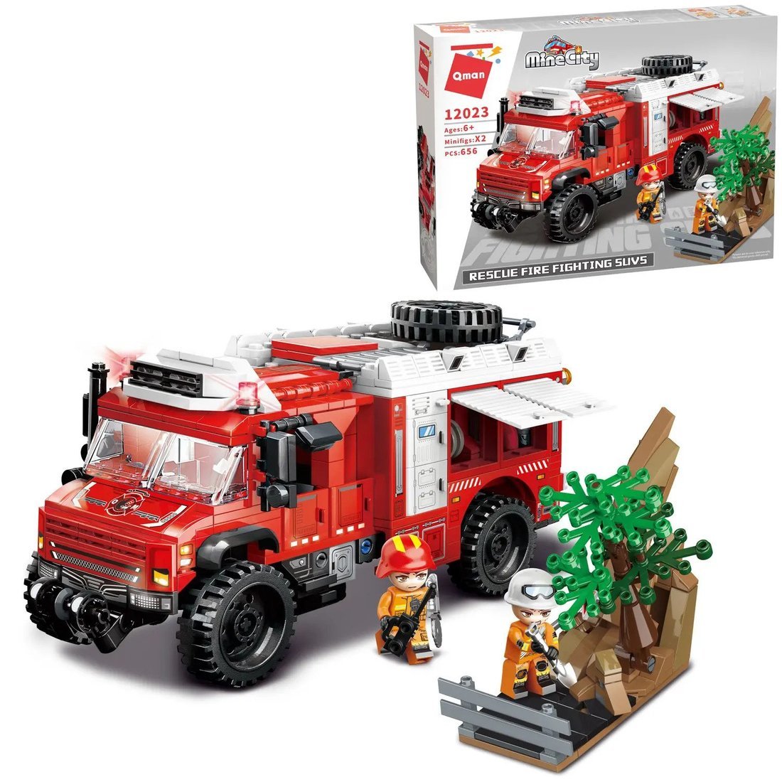 Конструктор Qman серия MineCity Пожарная машина: Разбор завала, 656 деталей