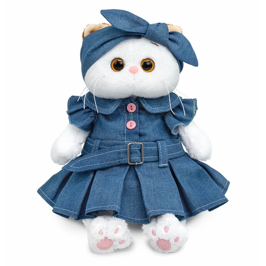 Кошечка Ли-Ли в модном платье из денима синего цвета с серым оттенком.