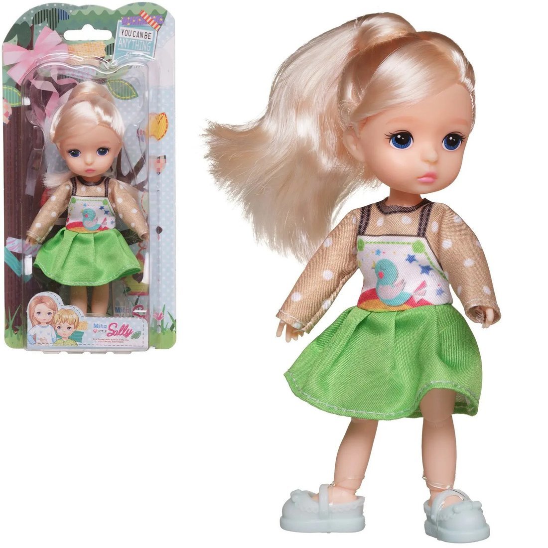 Кукла 13 см в бело-зеленом платье