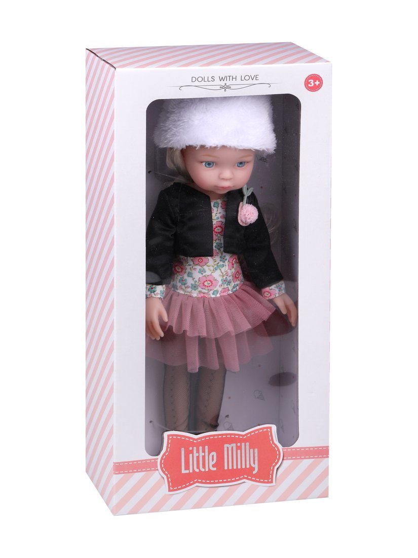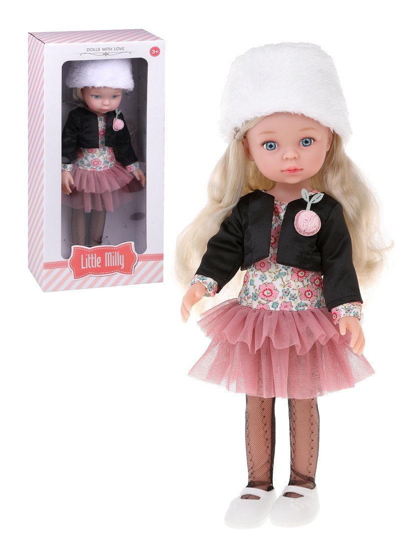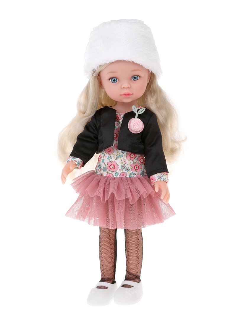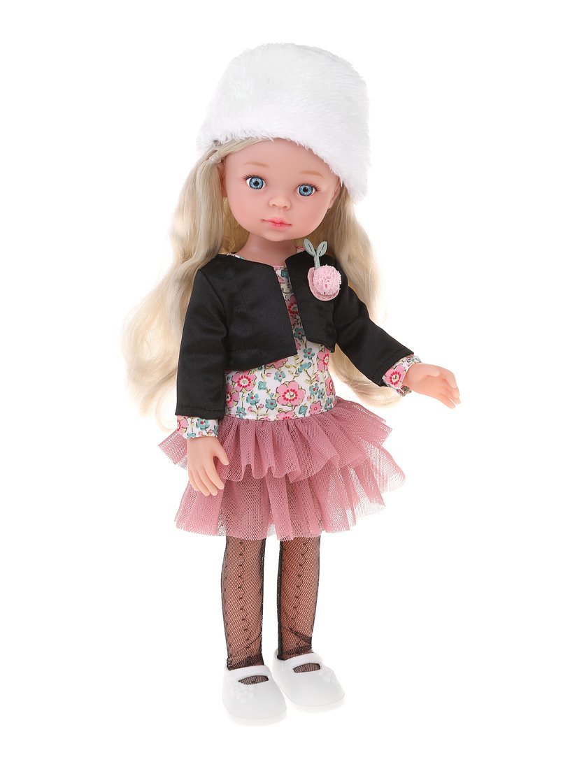 Эта очаровательная голубоглазая куколка станет любимицей девочки! У куколки стильный образ, на ней: платье с принтом в виде цветов, нижняя часть платья напоминает юбку-пачку из плотной сетки насыщенного пудрового цвета.