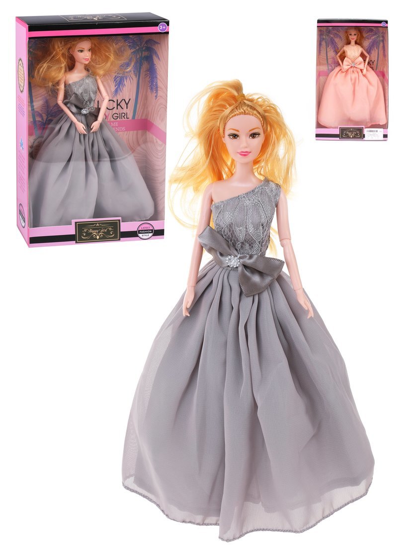Вы только посмотрите на эту невероятную красавицу – она просто прелесть! У куколки длинные волосы, шарнирные ручки (всего 4 точки артикуляции). На куколке – эффектное пышное платье в пол с открытыми плечами.