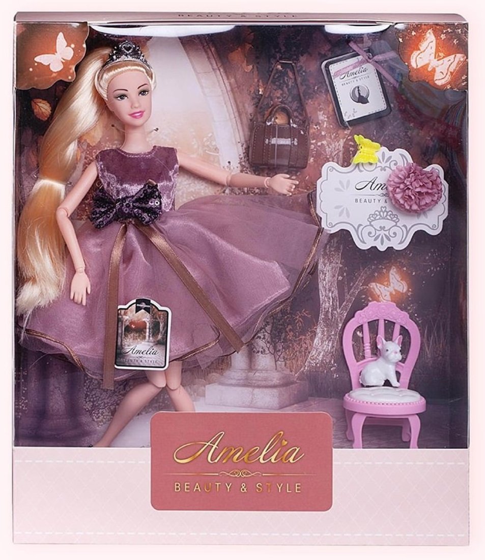 Комплектность: кукла, фигурка собачки, стул, сумка, заколка – 1 шт.