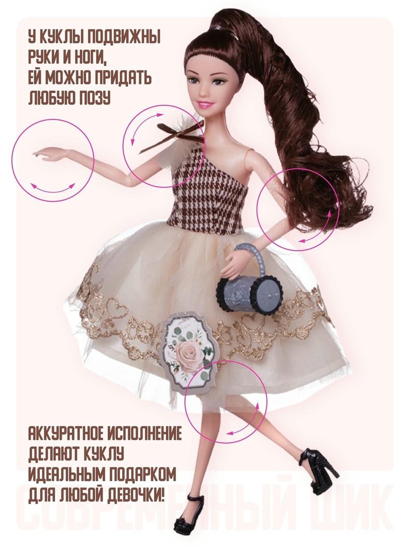 Кукла выглядит как красивая молодая девушка, которая разбирается в новинках моды и любит следить за собой. Ребенок, играя с такой куклой, придумает разные сюжеты, в которых он использует все наряды для игрушечной подружки. Также в наборе имеются модные аксессуары. У куклы подвижны части тела, благодаря чему в процессе игры девочка сможет менять положение игрушки.