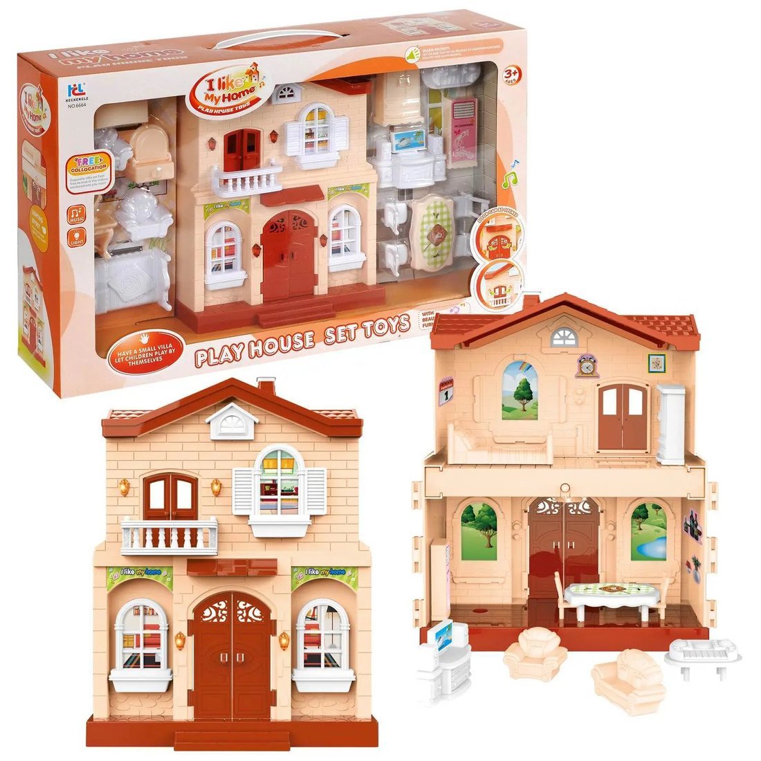 Кукольный дом «Мой новый дом» от бренда Junfa – это мечта любой маленькой девочки. Играя с ним, она может почувствовать себя взрослой, заботиться о своем доме, хозяйстве, создавать разные интерьеры. Игровой дом имеет открывающиеся двери: входные и балконные, оснащен всей необходимой мебелью для обустройства, что сделает игровой процесс более увлекательным и веселым. Домик для кукол имеет световые и звуковые эффект (при нажатии на кнопку, расположенную на задней стороне дома, звенит звонок, моргает лампа на первом этаже, лает собака). Кукольный домик изготовлен из прочного пластика, его детали очень яркие, качественные.