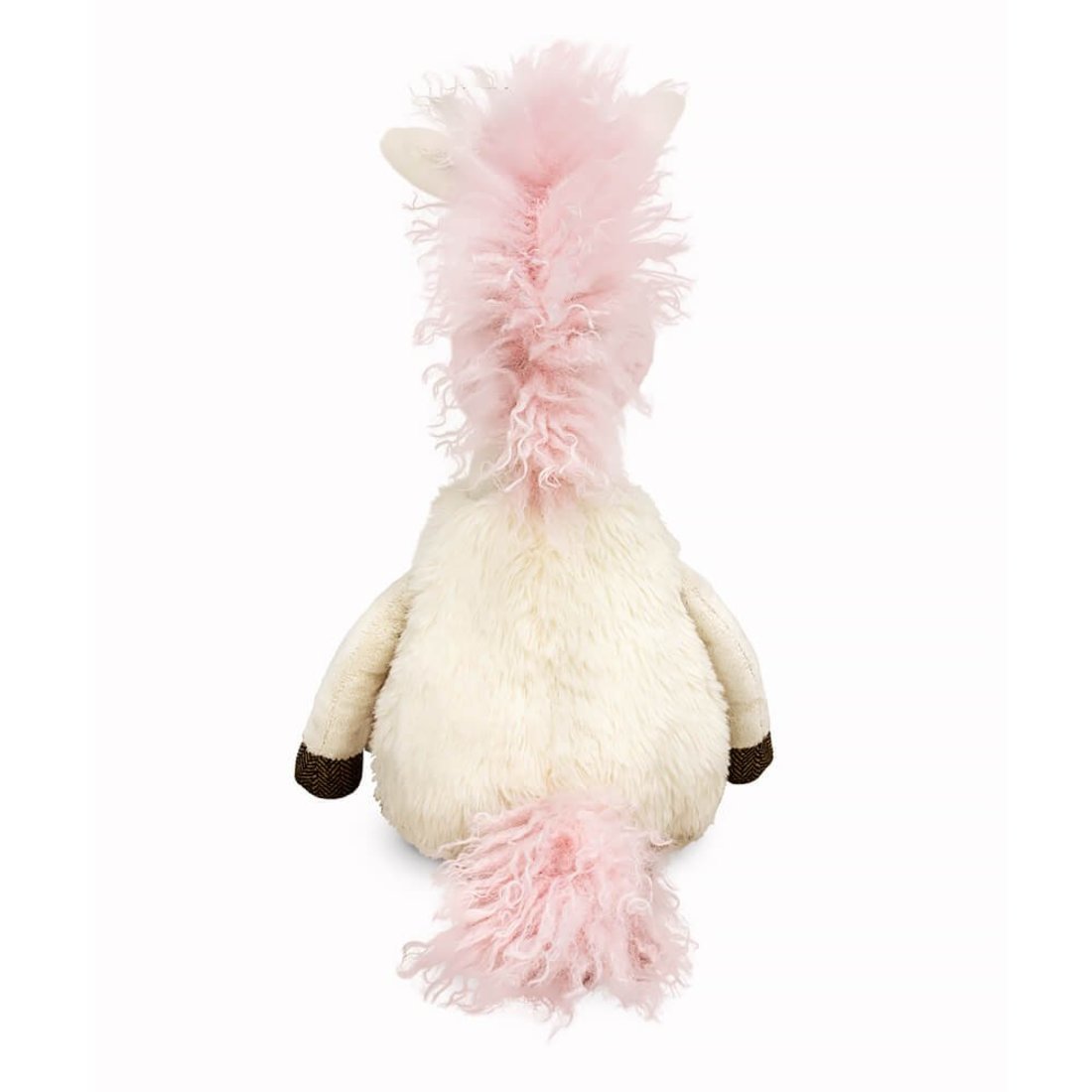 Ослепительно красивая лошадка Пола сшита из софта и короткого меха молочного цвета. На мордочке вставка из меха нежно-розового цвета, выразительные глазки Полы вышиты. В ушках вшит розовый софт. Грива и хвост из длинного меха в тон мордочки. Копыта выполнены из твида в «ёлочку». На груди у лошадки милый аксессуар – сшитая вручную розовая звёздочка из софта, с вышивкой и атласными лентами.