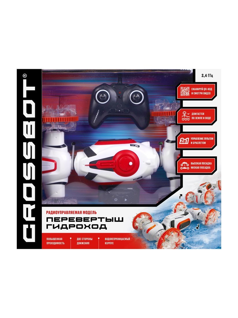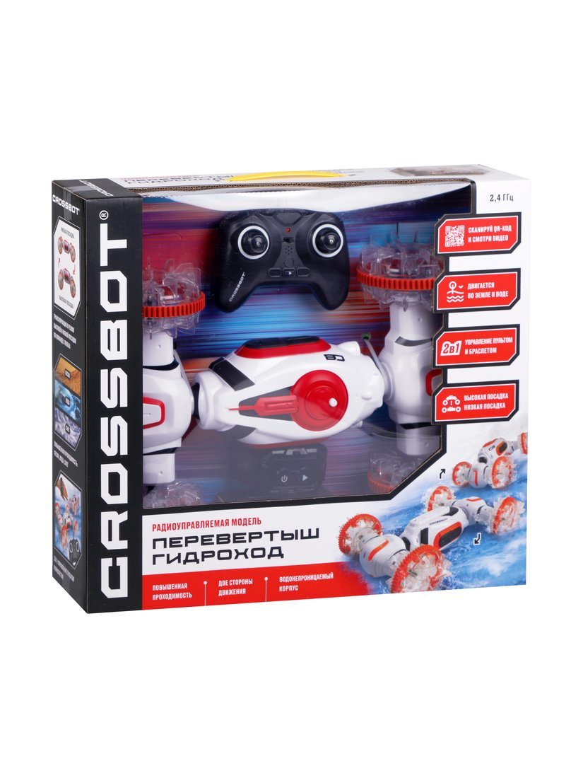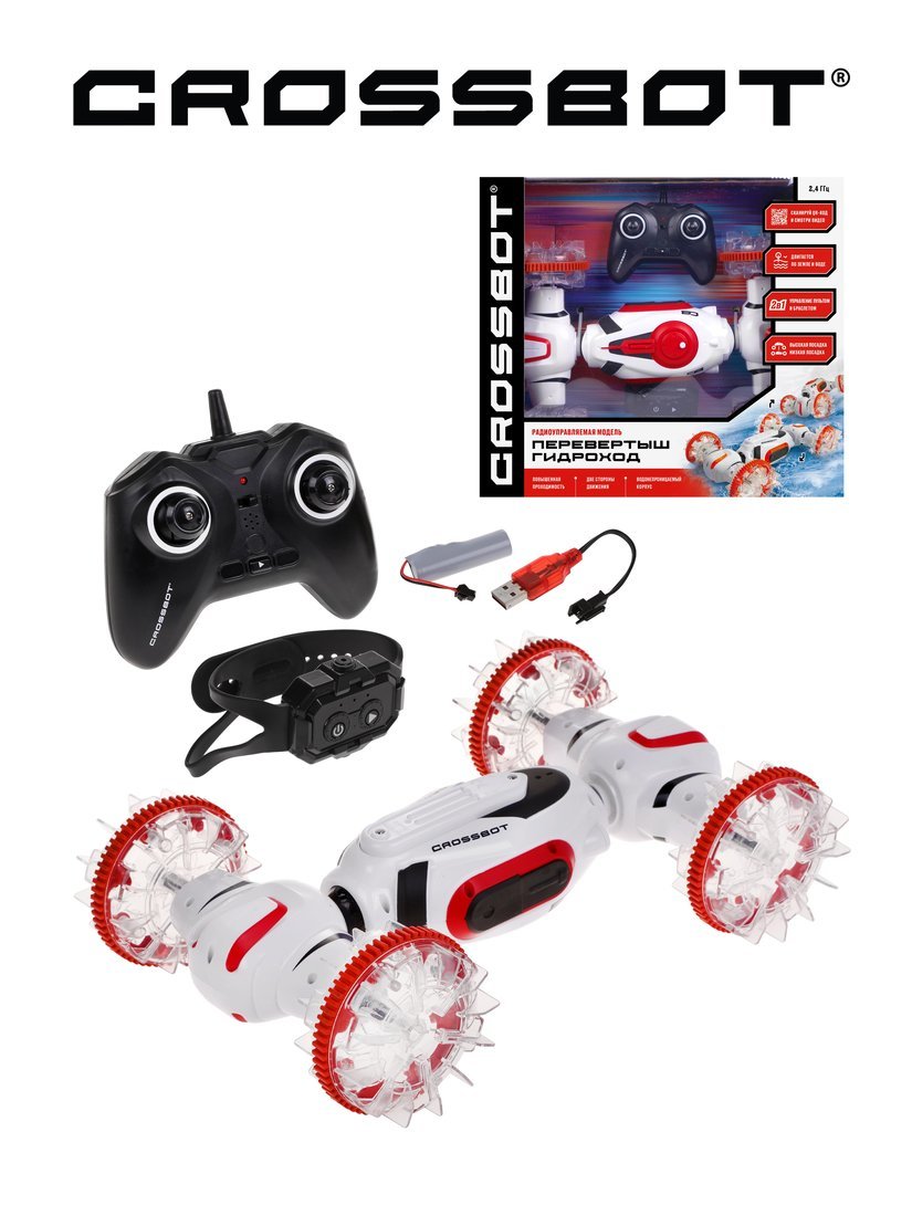 Машина р/у Перевертыш Гидроход, трансформация в режим высокой и низкой посадки, плавает по воде, двигается по земле, 2 пульта, аккум.