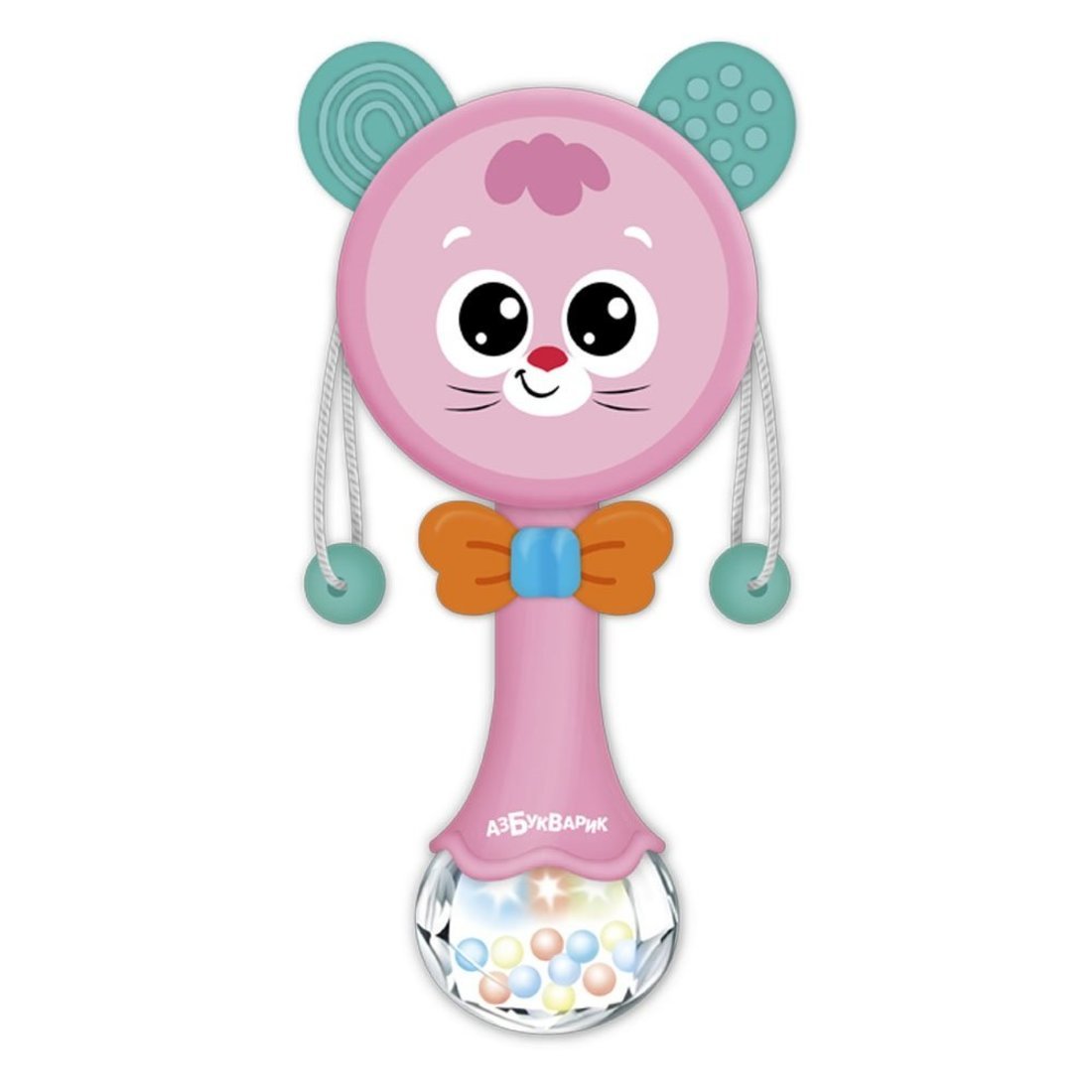 Малышу обязательно понравится вертеть и трясти такую забавную игрушку под музыку. Огонек мигает, шарики весело звенят, а мягкие рельефные ушки развивают пальчики.