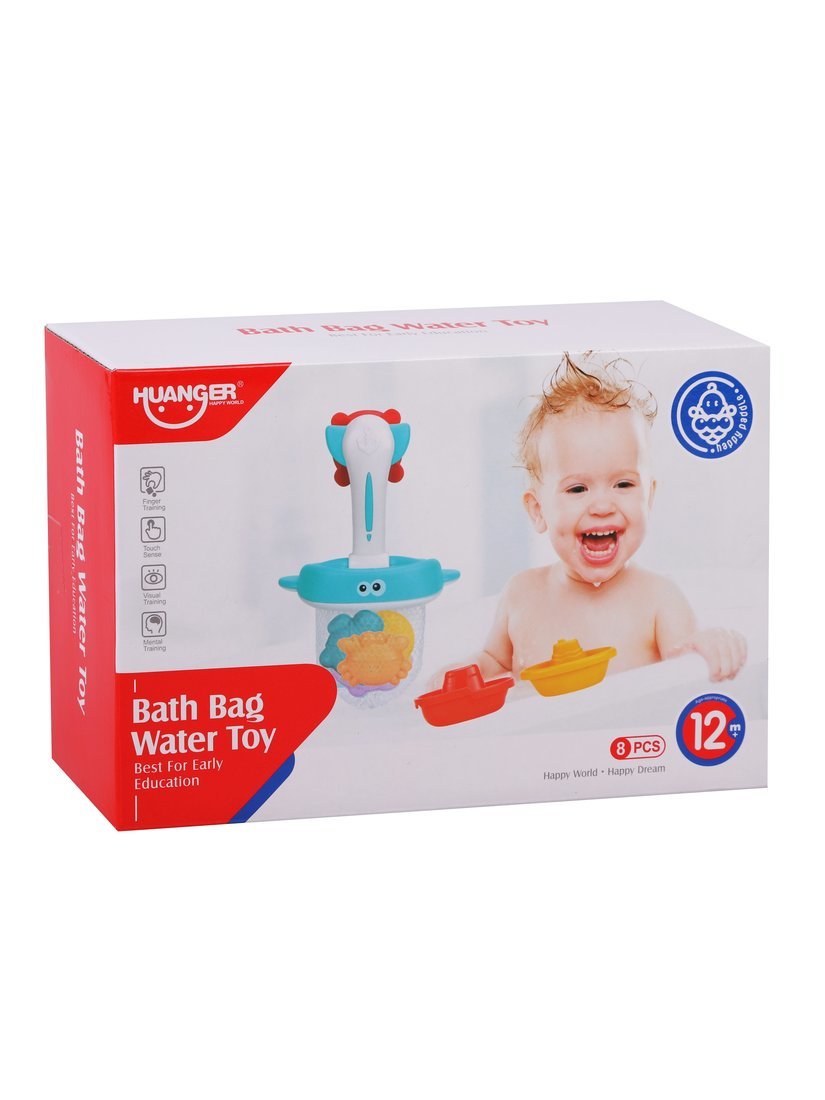 В комплект входит 8 красочных игрушек: 2 кораблика, рыбка, крабик, морская звезда, осьминожек и черепашка, а также рыбка-сачок!
