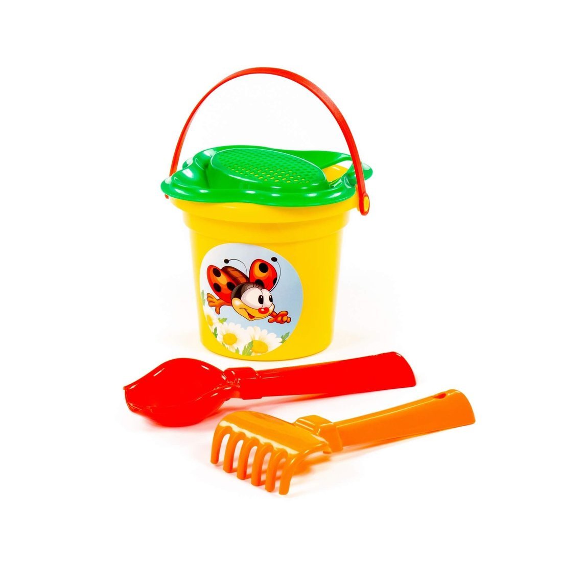 Ведро малое, ситечко-цветок, совок 2, грабли 2.