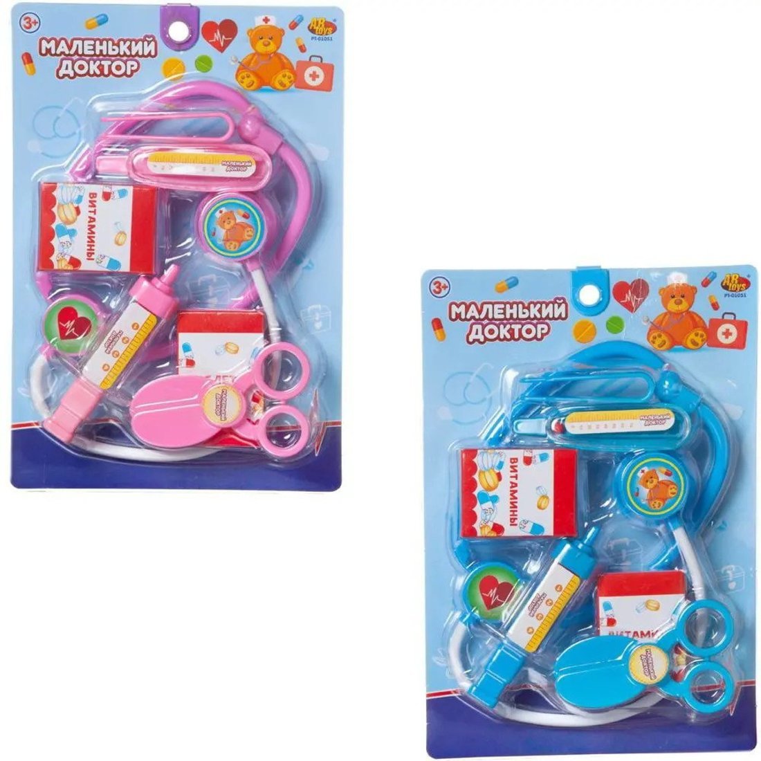 Комплектность: стетоскоп – 1 шт., пинцет – 1 шт., градусник – 1 шт., коробочка витамины – 1 шт., коробочка таблетки – 1 шт., шприц – 1 шт., ножницы – 1 шт.