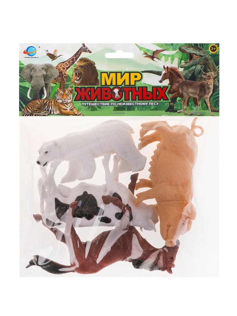 Данный набор познакомит ребёнка с представителями животного мира. В комплекте — 4 фигурки животных (корова, свинья, лошадь, белый медведь). Игра с небольшими фигурками развивает у детей фантазию и воображение, помогает расширить словарный запас и кругозор в целом.