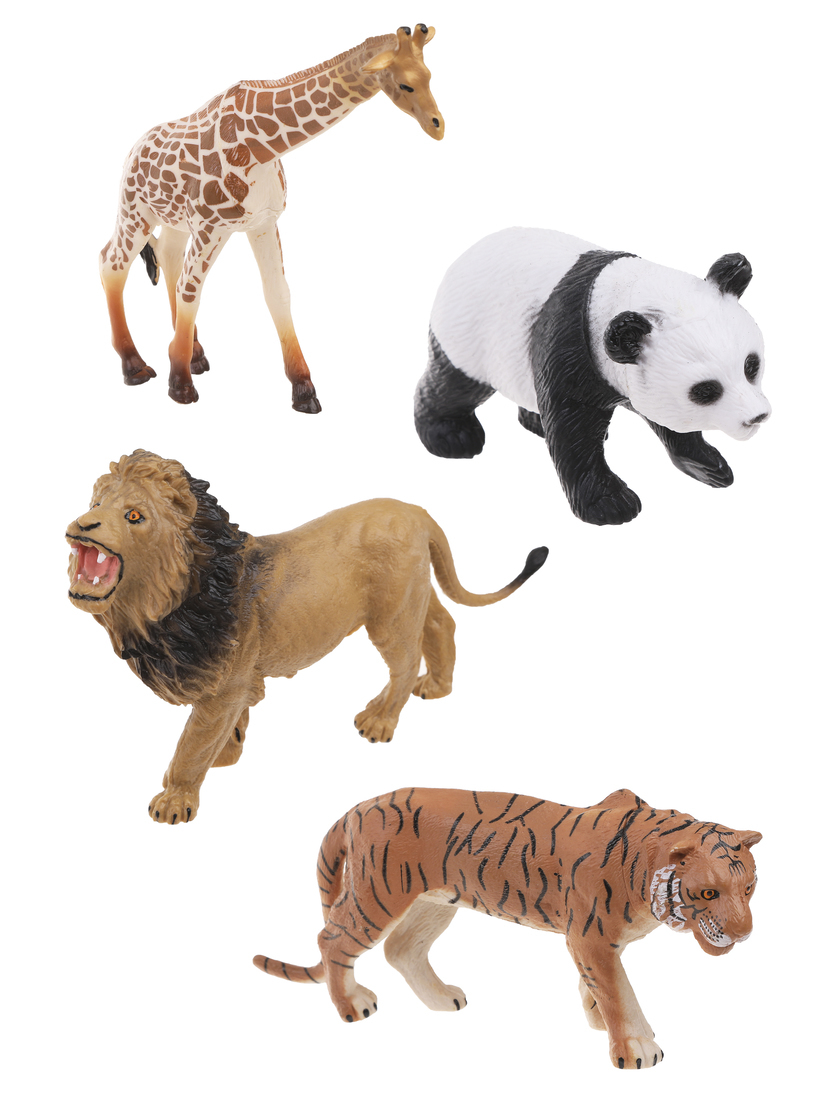 Данный набор познакомит ребёнка с представителями животного мира. В комплекте — 4 фигурки животных (жираф, панда, лев, тигр). Игра с небольшими фигурками развивает у детей фантазию и воображение, помогает расширить словарный запас и кругозор в целом.
