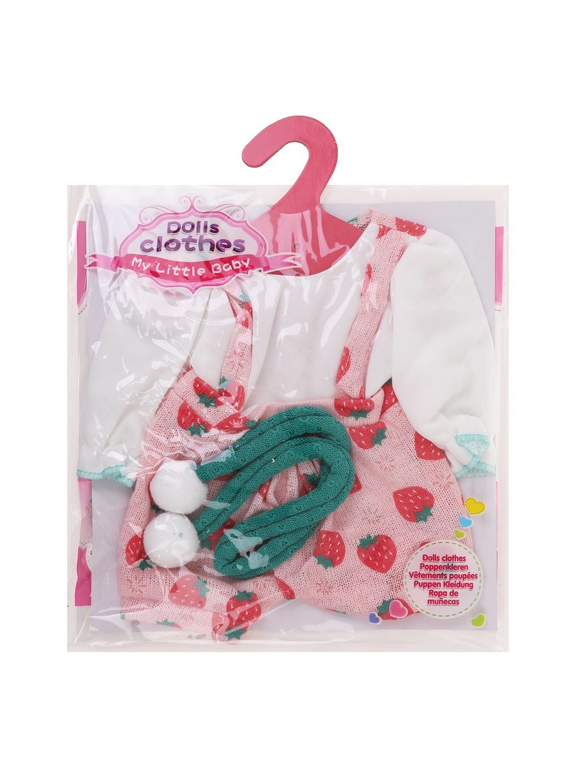 Этот комплект одежды прекрасно подойдет для куколки высотой 39-45 см. В наборе – комбинезон с длинными рукавами (застегивается сзади на липучку), шарфик и картонная вешалка.