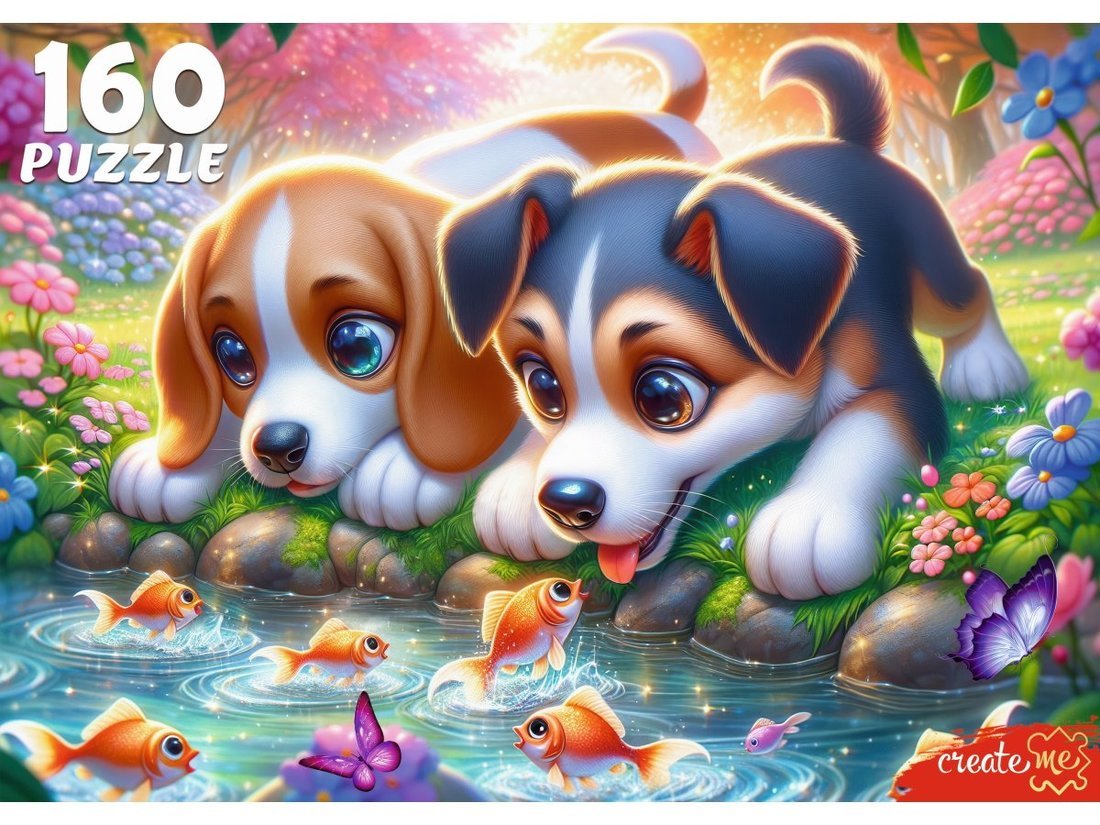 Пазлы 160 Щенки и рыбки