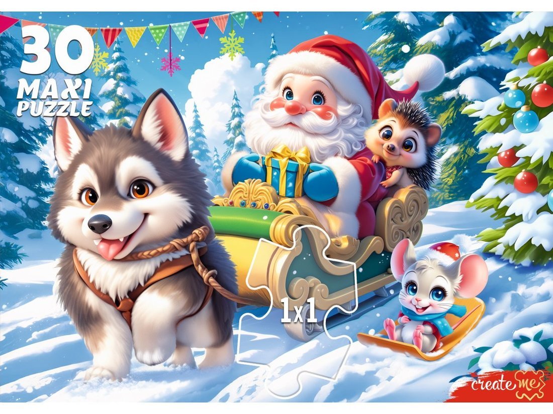 Пазлы MAXI 30 Хаски и Дед Мороз