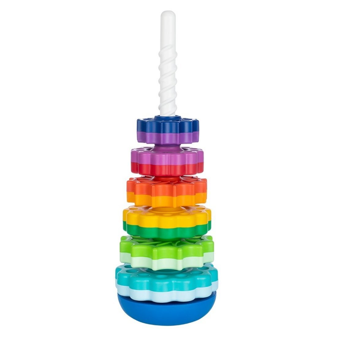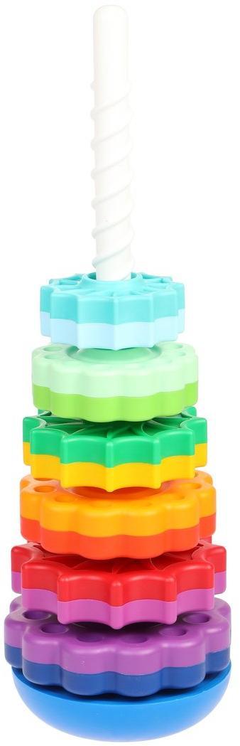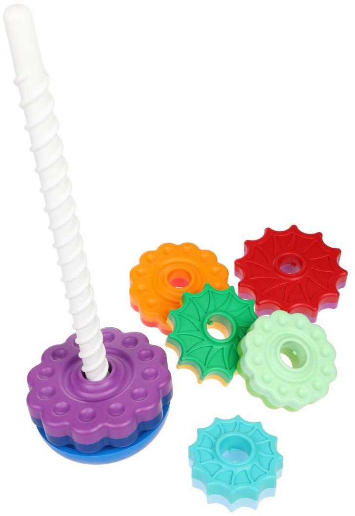 Развивающая пирамидка «Весёлые шестерёнки» состоит из основания и 6-ти двойных колец разного цвета, которые при кручении по стирали увлекают своими радужными переходами.