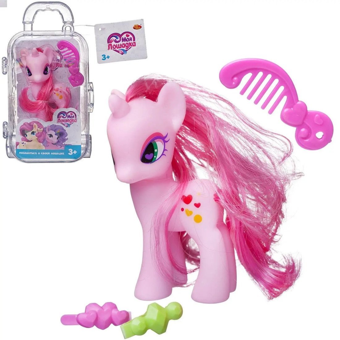 Очаровательная пони с разноцветной гривой и хвостом станет отличным подарком для любой девочки. Ее хозяйка сможет расчесывать свою лошадку, делать ее прически, используя расческу и заколки из этого набора. Пони упакована в прозрачный чемоданчик, в котором ее будет удобно хранить и брать с собой.