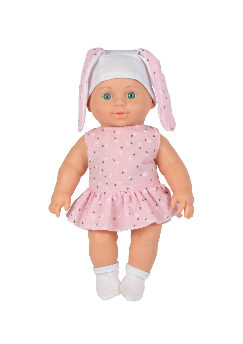 Малышка 21 - милый и обаятельный карапуз. Игры с таким пупсом помогут сформировать у вашего ребёнка чувство ответственности, навыки заботы о младших. Малышку так и хочется взять на ручки и позаботиться о ней. В комплект одежды входит: платье в цветочек, шапочка с ушками, носочки. Игровые возможности куклы: благодаря небольшому размеру и продуманной конструкции эту куклу легко и удобно брать в руки, её можно сажать, укладывать спать, переодевать. Куклу можно купать, так как у неё вставные незакрывающиеся глазки, рельефный кукольный паричок и нет звуковых устройств. Высота 30 см. Тело куклы пропорционально и гармонично, полностью выполнено из эластичного приятного на ощупь винила. Пупс имеет гендерные признаки.