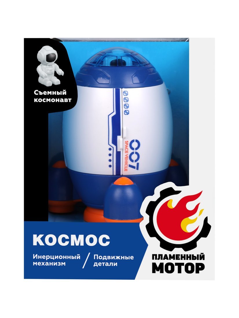 У ракеты съемная капсула с инерционным механизмом движения – он позволяет игрушке катиться вперед самостоятельно после предварительного разгона.
