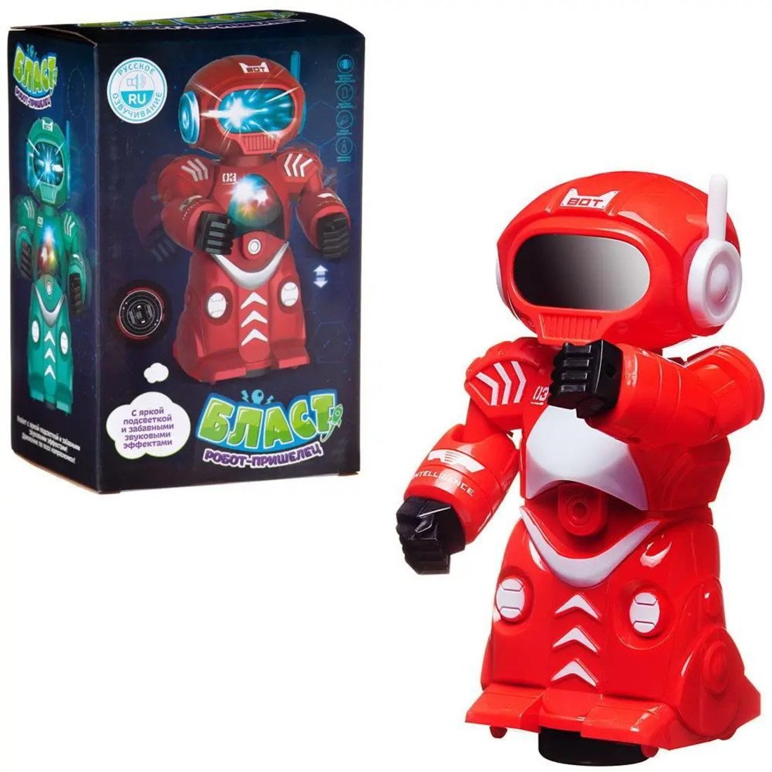 Робот-пришелец из серии Бласт станет отличным подарком для любого мальчика. Он имеет оригинальный дизайн, яркую, объемную подсветку. Робот может двигаться во всех направлениях: при столкновении с препятствием он разворачивается и продолжает движение до следующего препятствия. При движении руки робота поднимаются и опускаются. Робот произносит фразы на русском языке.