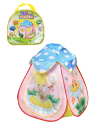 Размер палатки в разложенном виде (ДхШхВ) составляет 75х75х85 см. Изделие изготовлено из текстильных материалов с элементами пластмассы и металла. Рекомендованный возраст: 3 года +